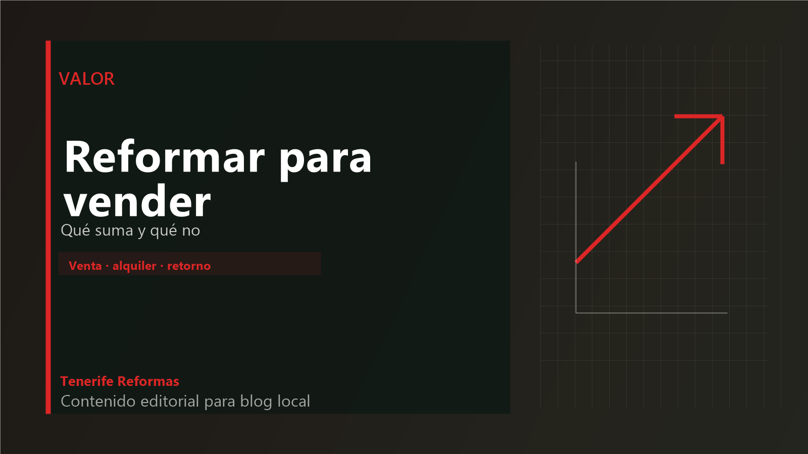 Nota de Tenerife Reformas: cuando asesoramos a un propietario antes de vender o alquilar, la pregunta principal no es “qué obra te gustaría hacer”, sino “qué tiene que cambiar para que este inmueble salga mejor al mercado y dé menos pie a regateo, vacíos o incidencias”.